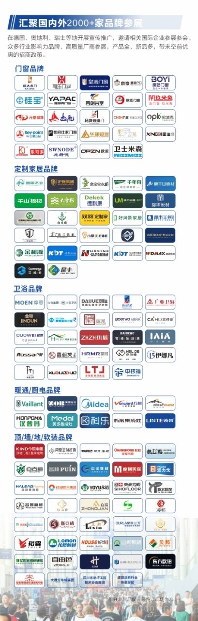 门窗、定制家居、卫浴厨电、顶/墙/地材/软拆、暖通、舒服家居等2000+行业品牌,